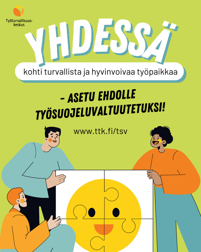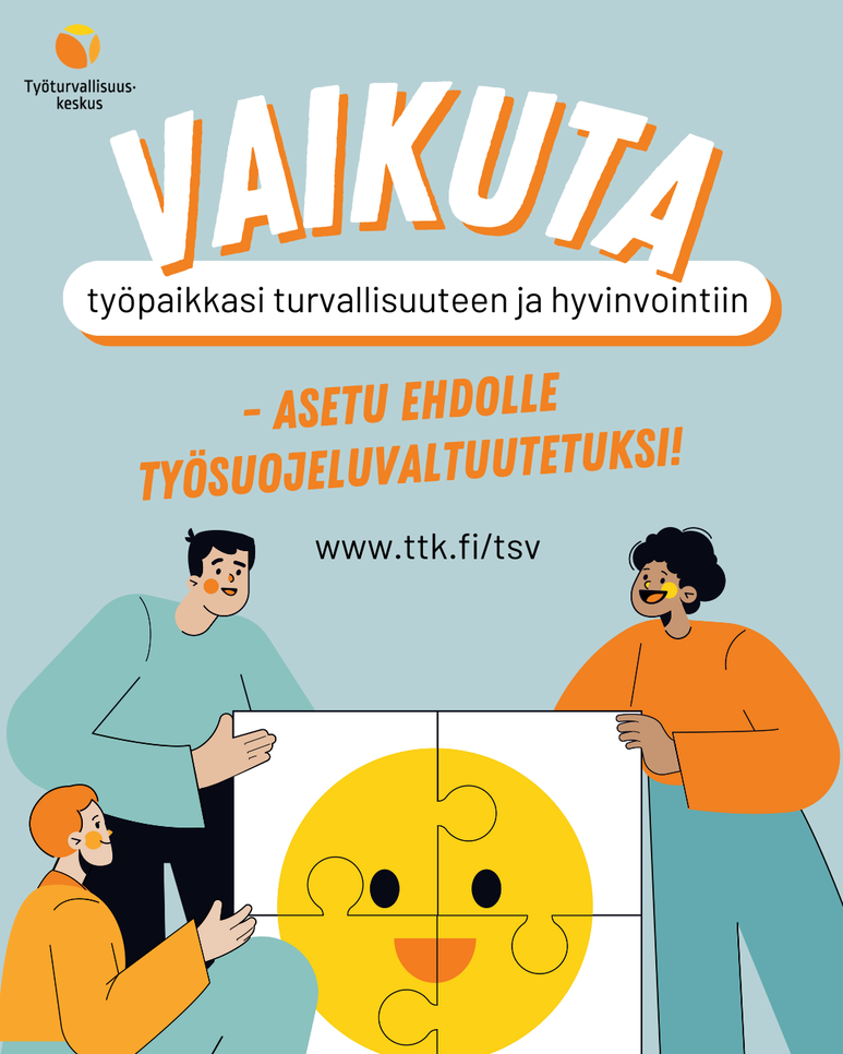 Ilmoittaudu mukaan vaaliin, jos olet kiinnostunut oman työpaikkasi työhyvinvoinnista ja työpaikan terveellisyydestä. Työsuojelu on työntekijöiden ja työnantajan yhteinen asia.